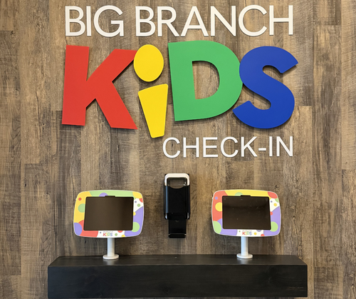 When you arrive at the main entrance, you’ll find the Big Branch Kids Check-In Station to the right. Our team will gladly help you register your child and answer any questions. Children under 3 are directed to the nursery, while kids ages 3 through 6th grade begin the service in the sanctuary.